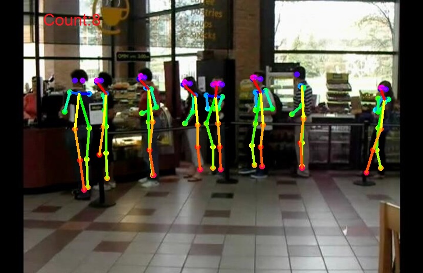 Собственно сама технология подсчёта людей известна и может включать в себя, как распознавание лиц, голов людей, так и распознавание всего тела, например так, как показано ниже: